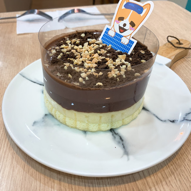 看起來是蠻有趣的,但吃起來,個人覺得巧克力醬沒有很濃郁,蛋糕味道像是古早味的那
